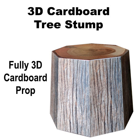 Made of printed cardboard. This stump is perfect for stage, theater, and retail displays.