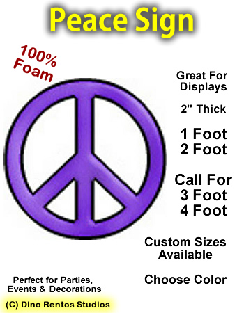 This peace sign is 2" thick and makes for a greaty display or stage prop.